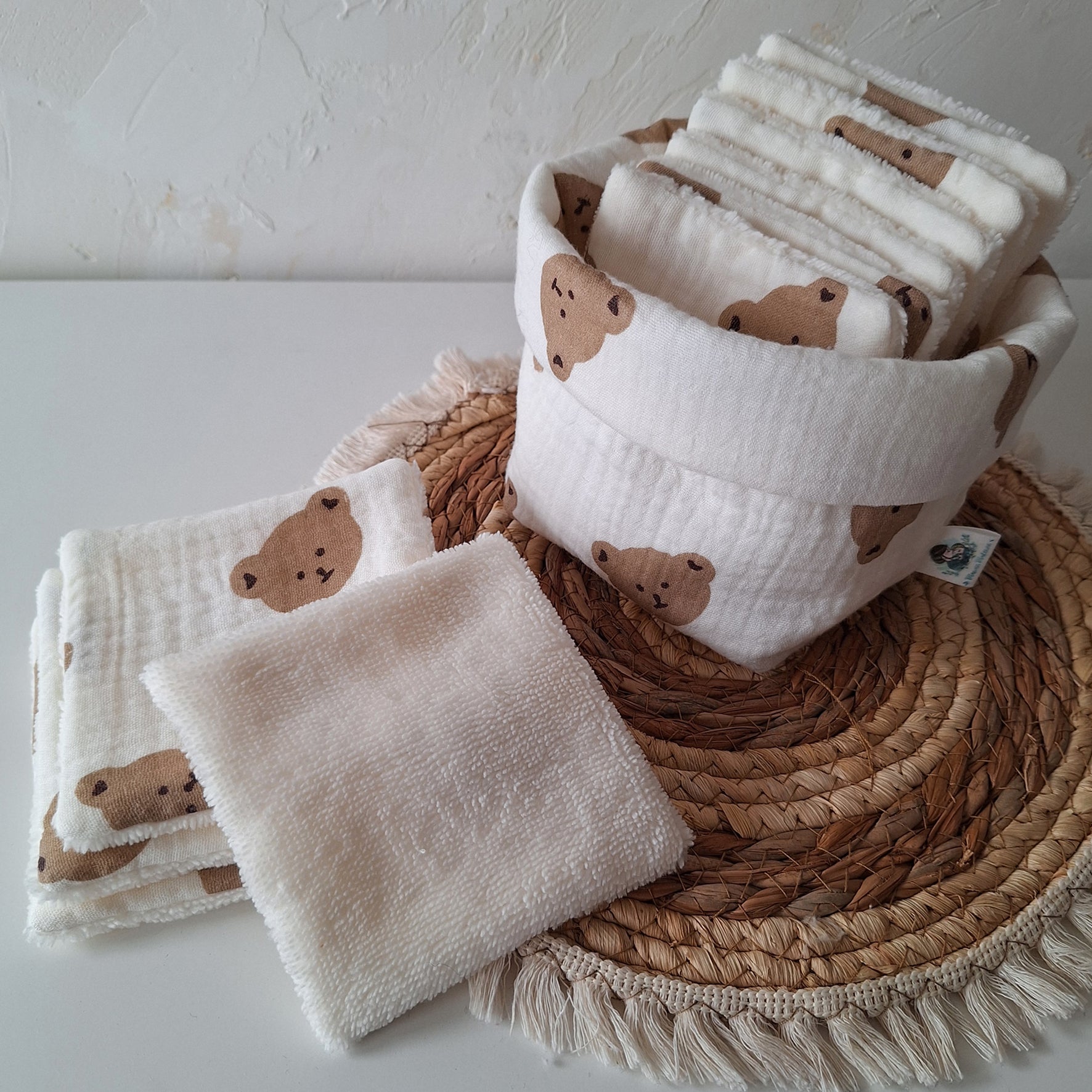 • 1 panière de rangement en double gaze thermocollée